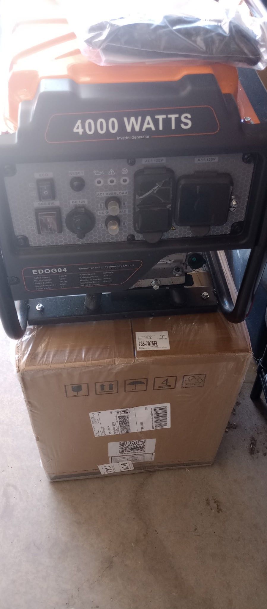 Brand New Still IN THE BOX! $300 FIRM EFURDEN 4400 WATT INVERTER OFF GRID PORTABLE GENERATOR 12V DC OUTLET 30 AMP 12V PLUG (2) 110 V PLUGS ECO MODE SWITCH FUEL GUAGE 52 LBS 3 YR MANUFACTURERS WARRANTY WE BOUGHT 2 ACCIDENTALLY! BUT-WE TOOK THE 1ST GENERATOR CAMPING AND IT WORKS GREAT! THIS WOULD BE FANTASTIC TO HAVE A BACKUP GENERATOR IN CASE OF AN EMERGENCY! I Accept zelle, Cash app, venmo and PayPal. Located in copper basin community in San tan valley. IF THE ADS UP ITS AVAILABLE!!!!! I WILL DELETE WHEN SOLD