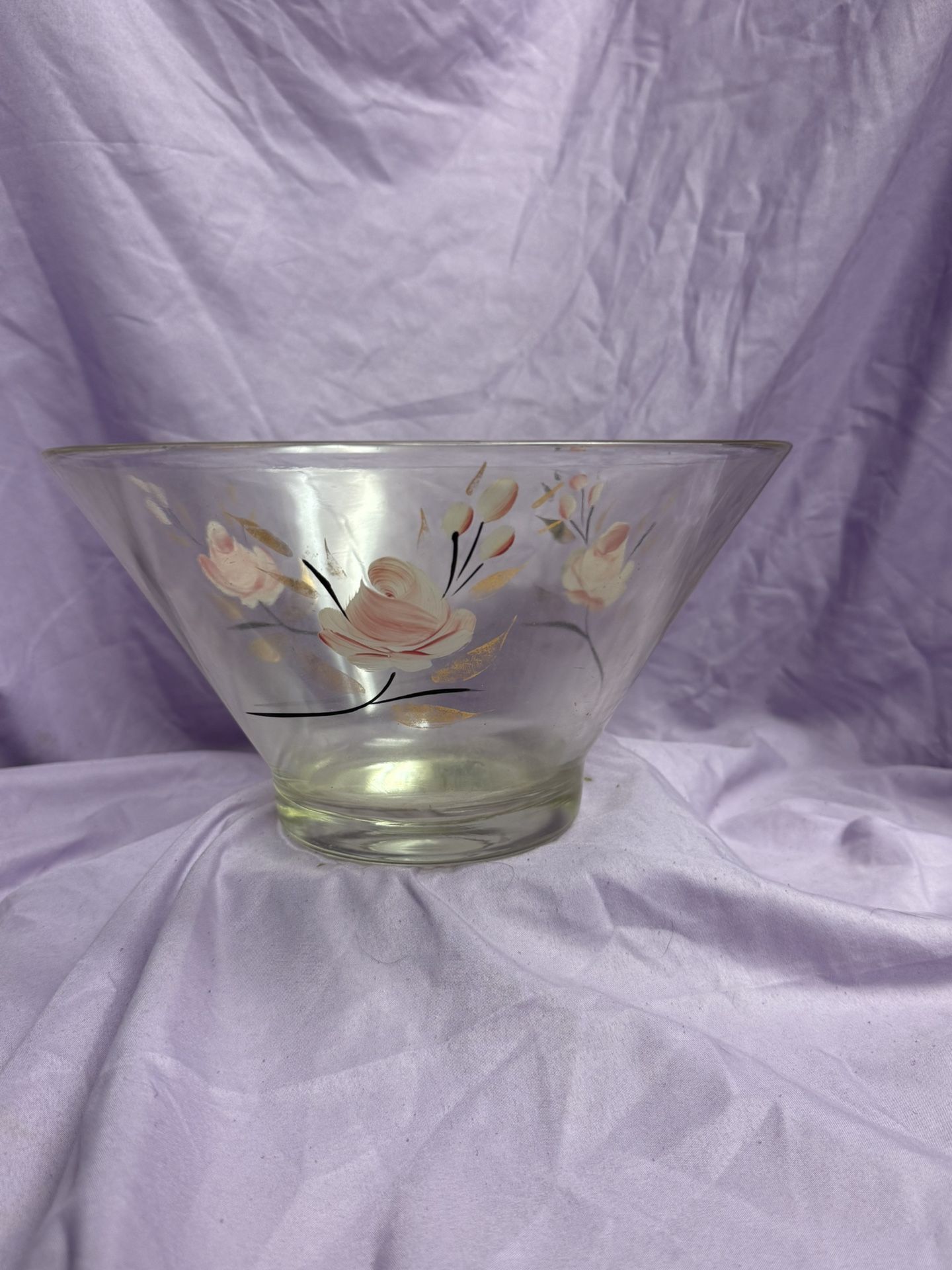 Anchor hocking gay fad pink roses hand painted salad bowl