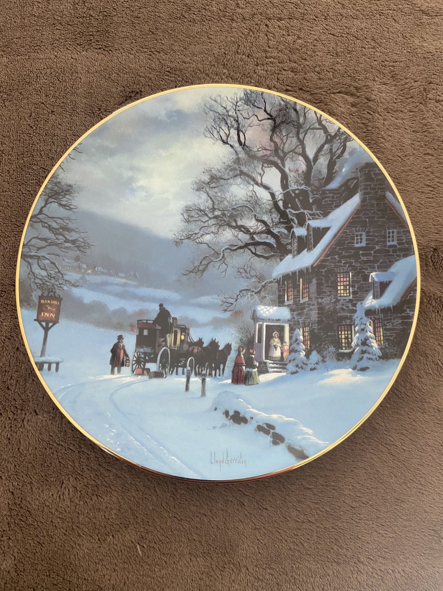 This limited edition W.S. George, ‘Holiday Journey’ plate is in fantastic condition. It’s 8 1/2 inches in diameter and has only been used as a display. It comes with the Certificate of Authenticity, a leaflet highlighting the plate and Lloyd Garrison. It also comes in the original box. This beautiful plate comes just in time for the holiday season