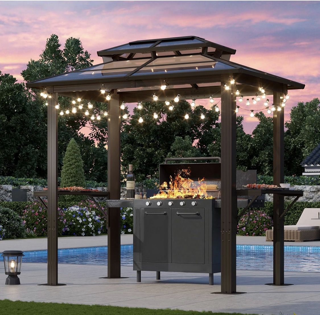 Aoxun Grill Gazebo 8 x 5FT, Aluminum BBQ Gazebo with Double Polycarbonate Top, Grill Canopy Hardtop with Shelves for Lawn, Patio, Garden Bought on Amazon and then saw another option more suitable to my liking. So I figured why not sell if not I will return . You must pick up !