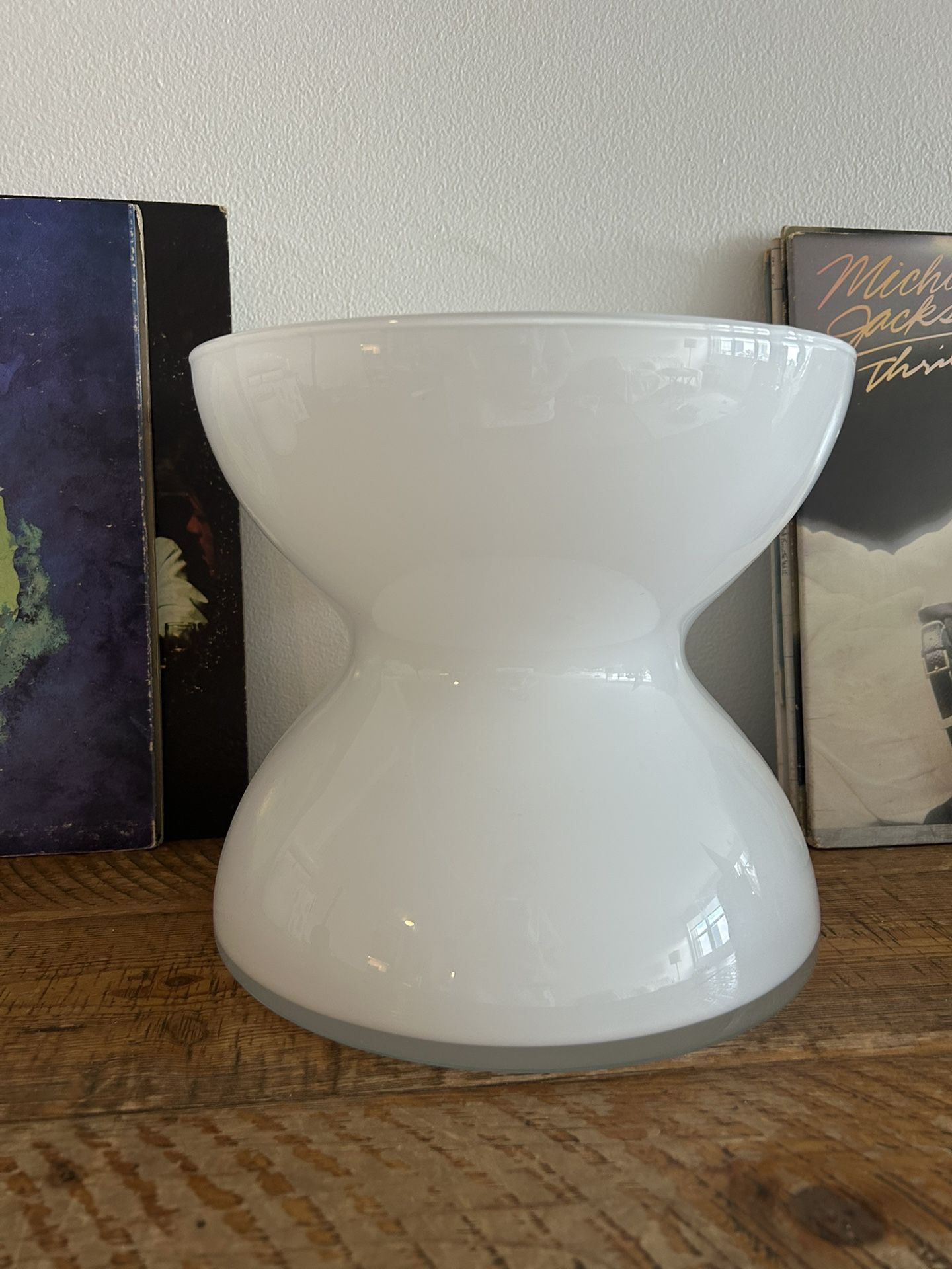 Modern White Glass Flower Vase Large: 10 inch wide, 9 inch high