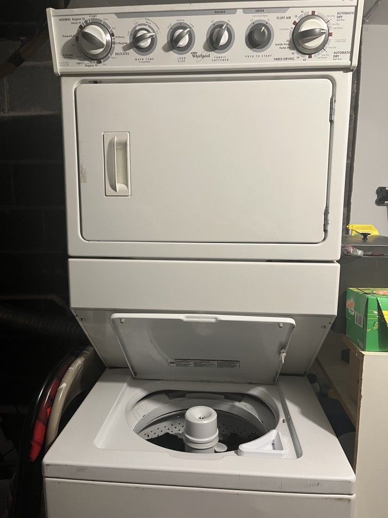 Very nice Whirlpool stackable Washer/Dryer combo Electric. $300 or best offer. 27" Width × 24" Depth x 72" Height.