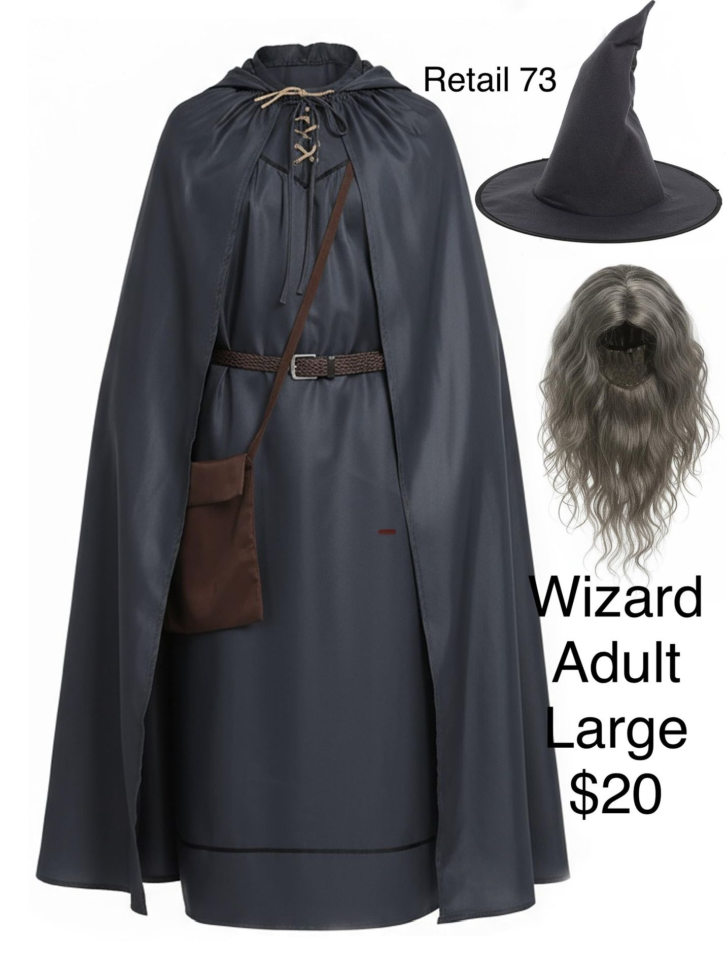 Wizard Costume Men Large Halloween / Traje de Mago Hombre Grande Retail /Precio de venta publico $73 (to compare savings) But you pay the discounted price in listing , not retail. You can pick up in north Houston or I can ship for $5. Lots more costumes on my marketplace . Or at https://offerup.com/redirect/?o=ZmIuY29tL2NyZWVwaW5nY29zdHVtZXM= Lo puedes levantar en lado Norte de Houston o Puedo mandar por correo por $5. Tengo mucho mas en esta cuenta de marketplace o en https://offerup.com/redirect/?o=ZmIuY29tL2NyZWVwaW5nY29zdHVtZXM=
