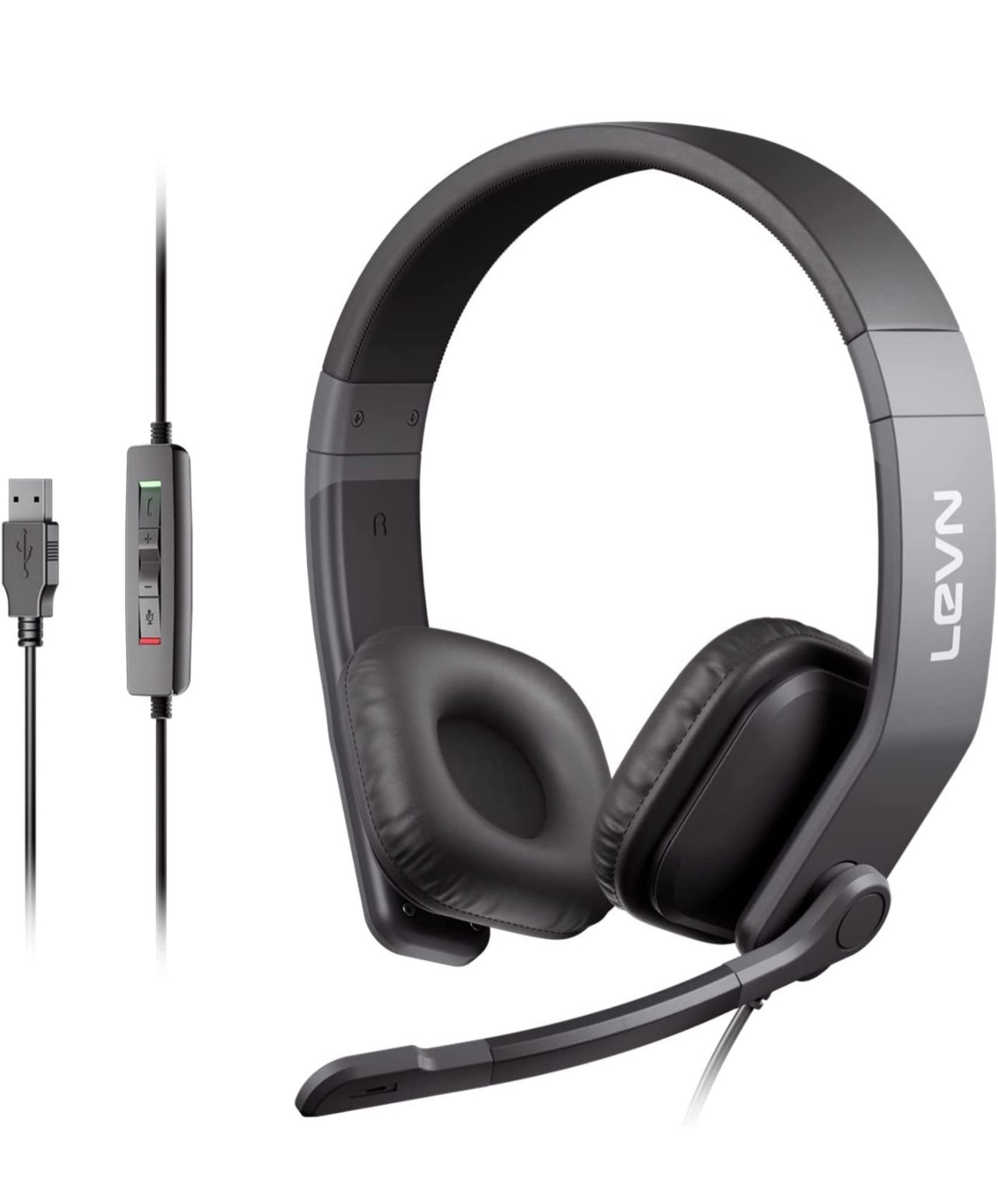 USB Headset with Microphone for PC with Noise Cancelling, in-line Controls & Mute Button, Computer Headset for Work from Home/Call Center/Office/Online Class/Teams/Zoom/Skype