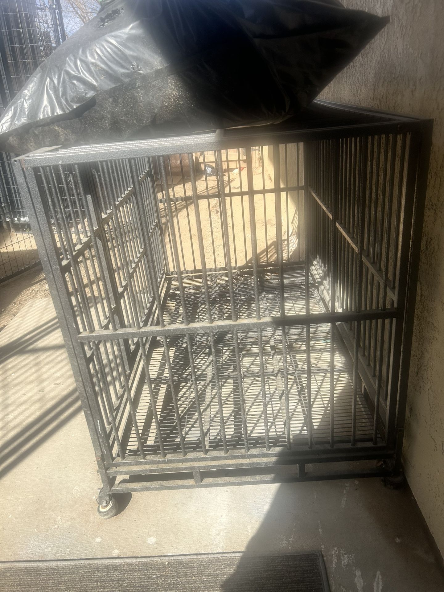 Xl dog kennel on wheels with under sliding trays