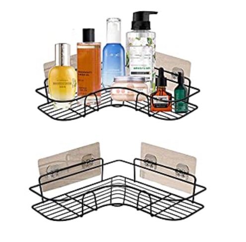 2 Packs Corner Shower Caddies, Bathroom Organizers And Storage Shelves, Shampoo Soap Holders, Rust Proof Racks, Wall Mounted Color Black New