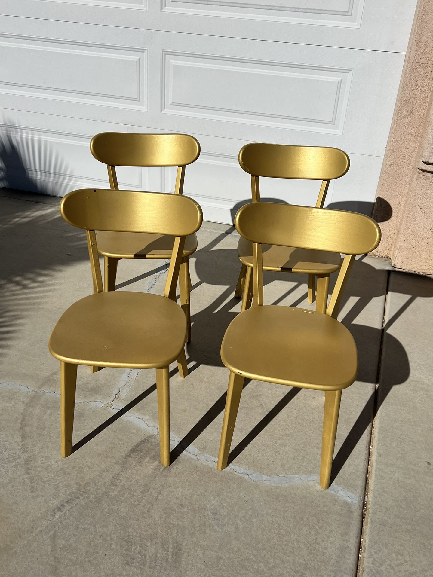A Set Of 4 Wooden Chairs Gold Color
