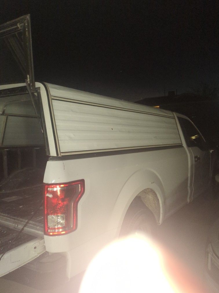 8 foot camper white with key..back up into garage and one side doesn't close right still closes though...will take $200