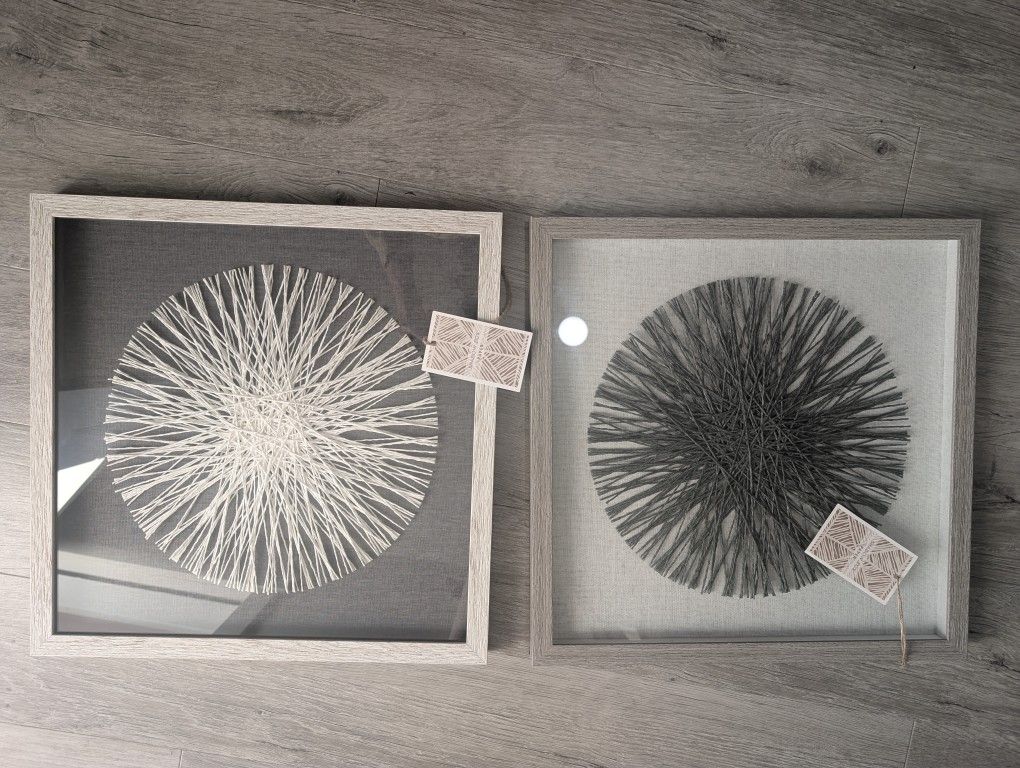 Still have the tags since I never ended up using them. Colors are light grey and eggshell. Great decorations if you're wanting to tie everything together. They are 17.5" by 17.5" Asking $20 for both. First come first serve. No holds. Pick up only