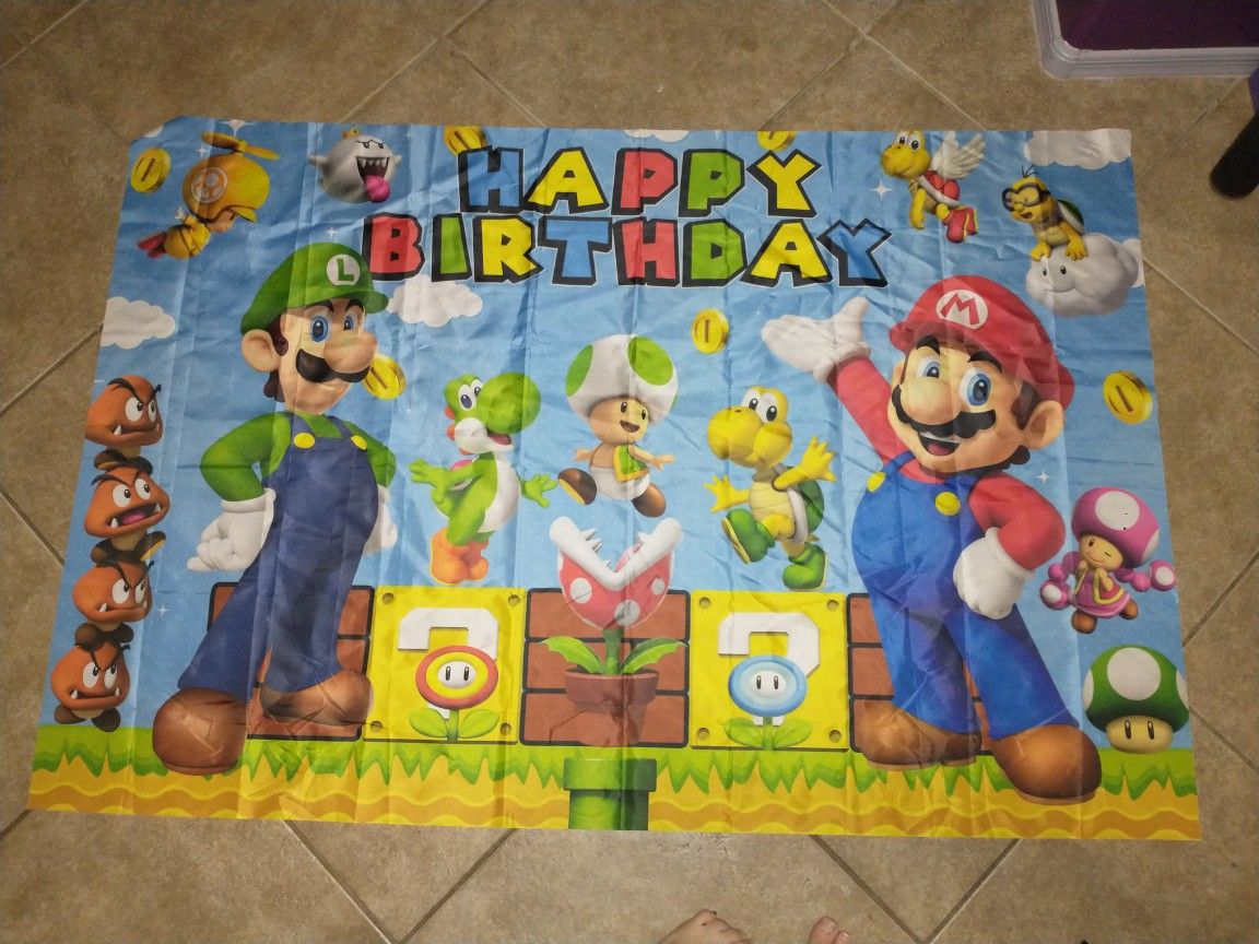 Mario Bros & friends Happy Birthday Cloth Banner 59" by 49"