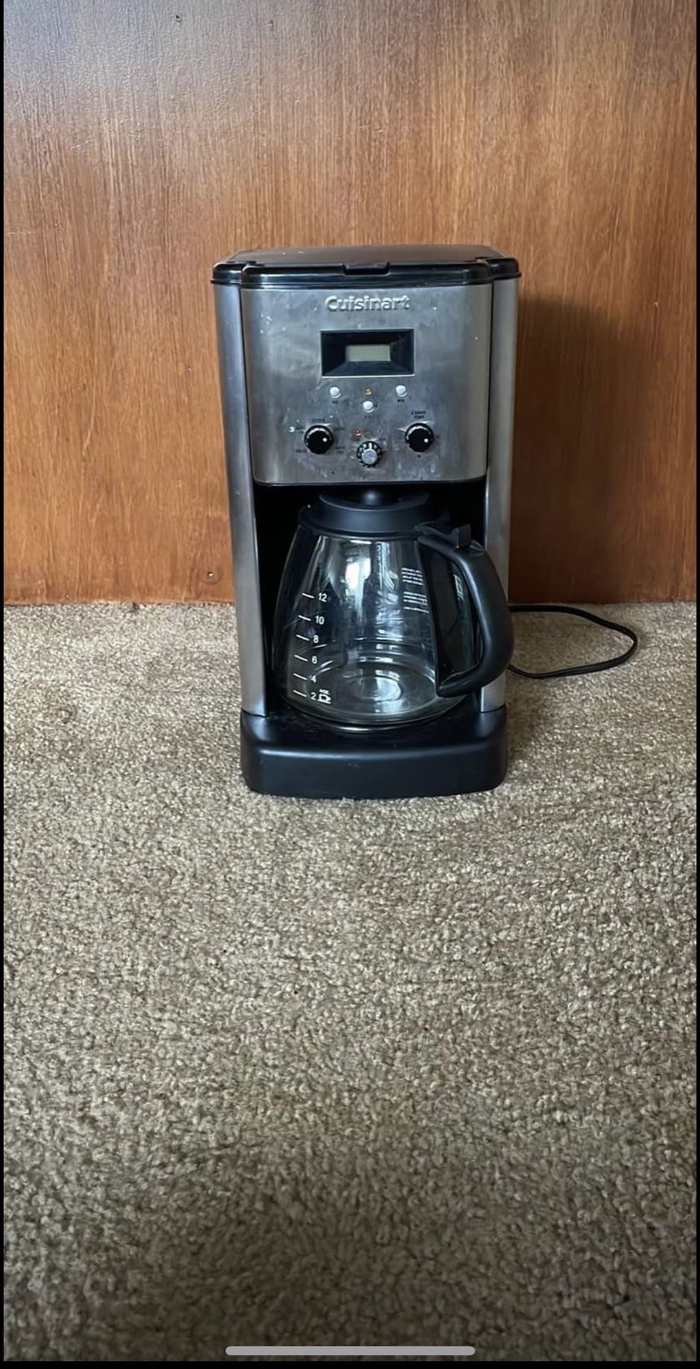 Cuisinart 12 cup programmable coffee maker with temperature option. Cleaned and works perfect.