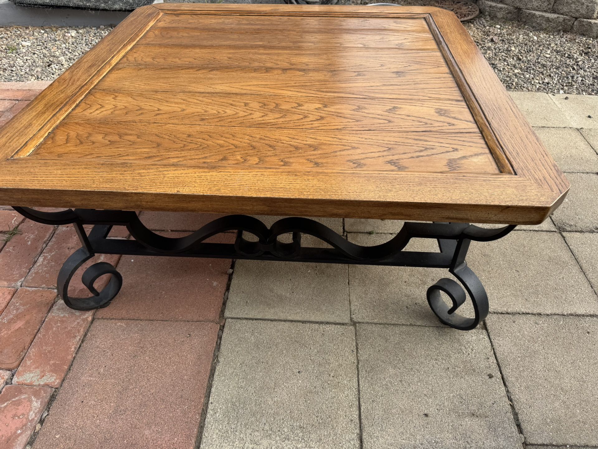 Solid Oak with Iron Base 40x40x17 tall located Downtown Oceanside