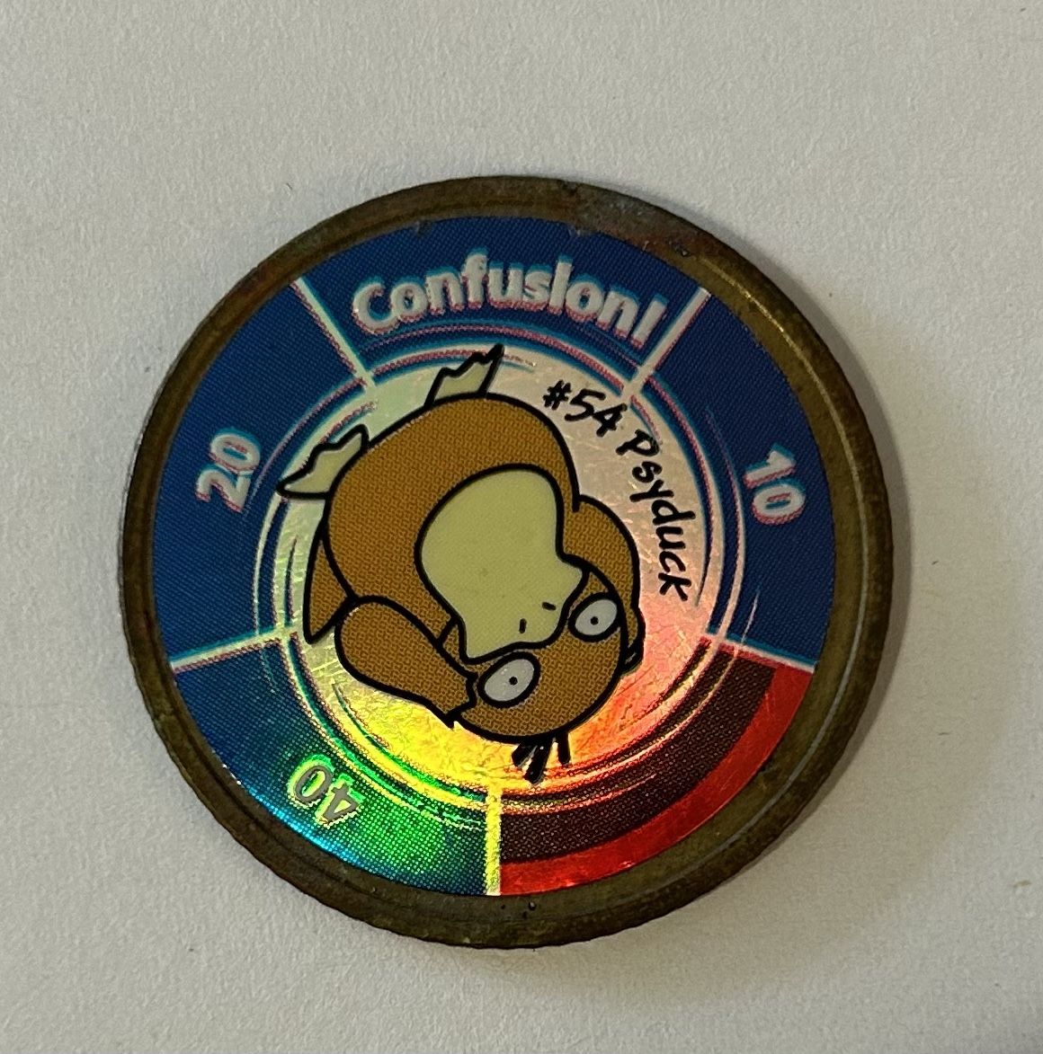The coin features the Pokémon's name ("Psyduck"), number ("#54"), an attack name ("Confusion!"), and various attack numbers (10, 20, 40). $15