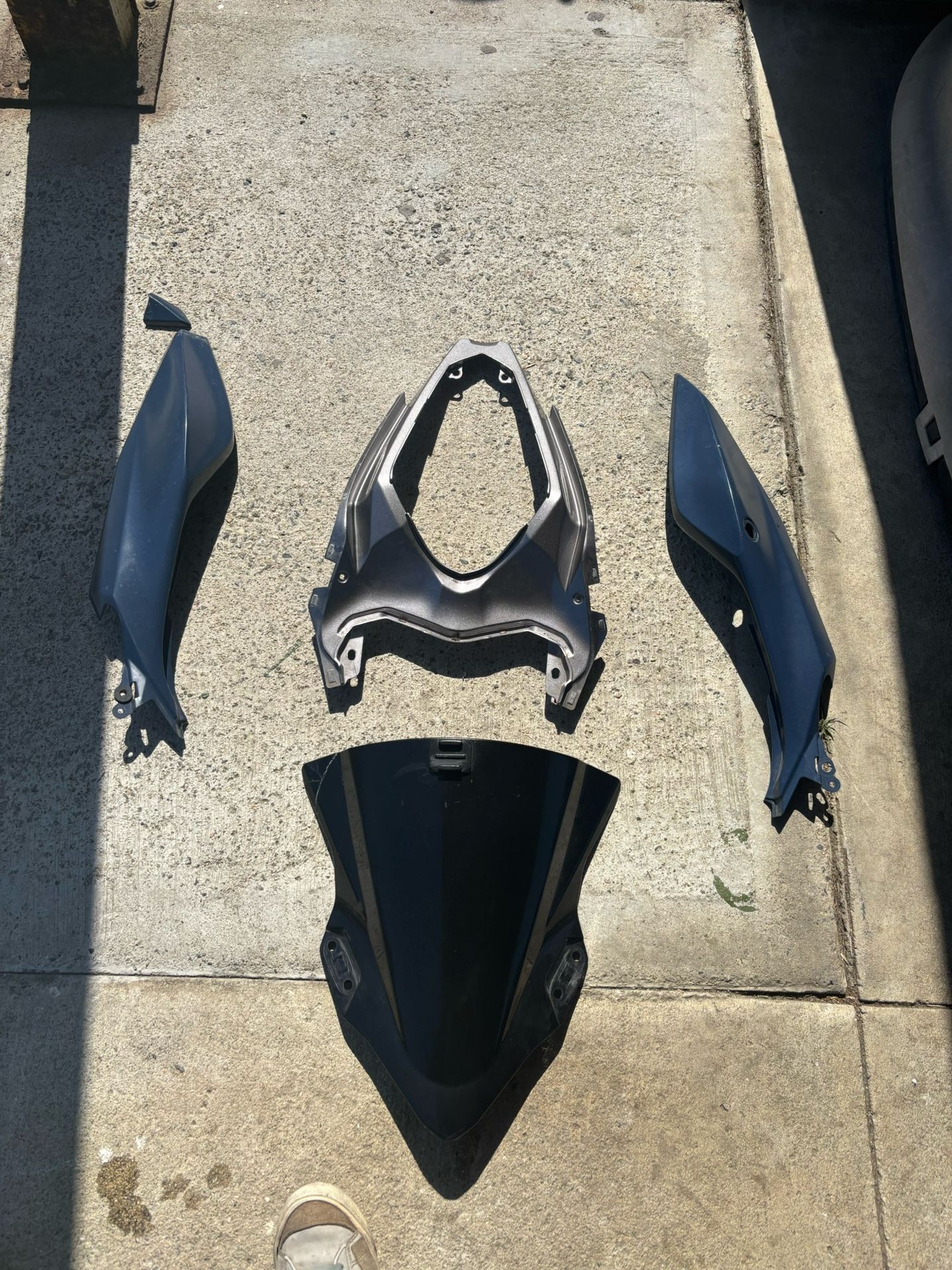 Ninja 400 Windshield (Broken from a Corner)- $50 Tail Parts (left side is broken on the corner, center and right pieces are good)- $70 Or everything for $110 Can negotiate