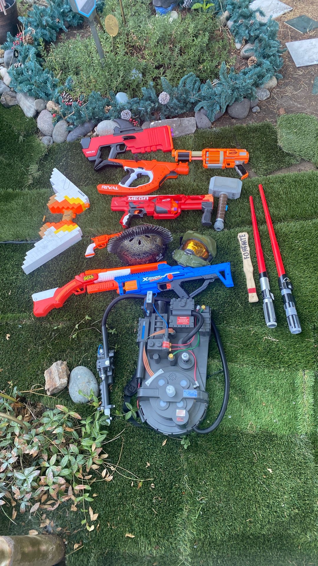 This is a fun time for kids and adults from nerf arrow by Minecraft to Roblox and Fortnite with a fun mask and Mohawk helmet for safety and to really take it up a notch there’s a ghostbuster eckto plasma pack that works perfectly. So take a break from scrolling and enjoy the sunshine while we have it and make some fun memories right now with this sweet deal 60$ firm which is what 1 nerf gun costs