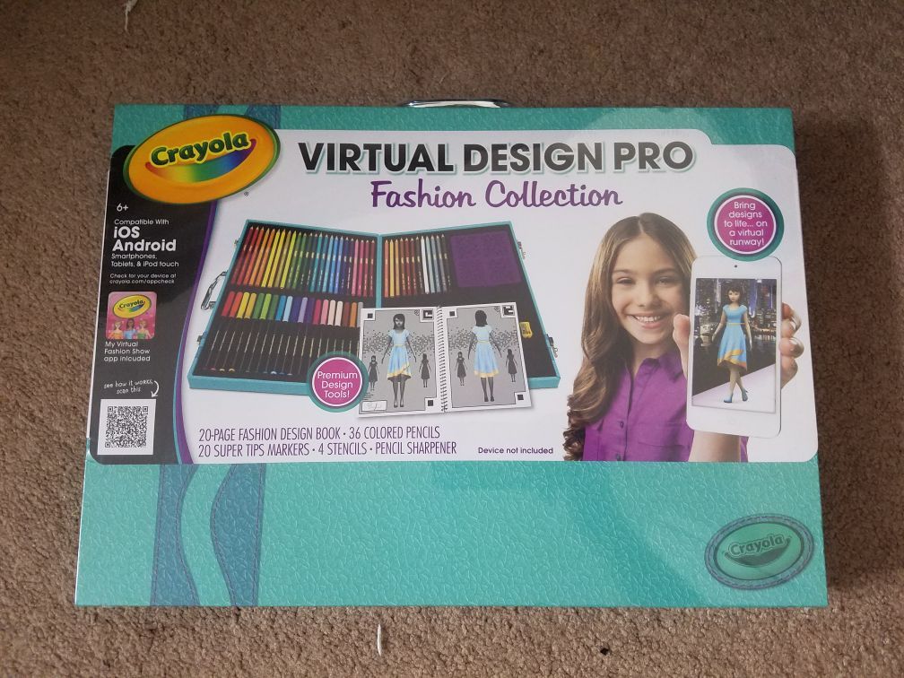 Features Crayola Virtual Design Pro brings your fashion designs to life virtually, just like a professional designer!Recommended For Ages 6 And UpWarning: Choking Hazard-Small PartsCrayola Virtual Design Pro brings your fashion designs to life virtually, just like a professional designer!Compatible with iOS and Android smartphones and tablets and iPod TouchContains: Design portfolio and 20-page design book, 36 colored pencils, pencil sharpener, 20 Super Tips markers, 4 stencils and My Virtual Fashion Show AppCrayola Virtual Design Pro brings your fashion designs to life virtually, just like a professional designer!Compatible with iOS and Android smartphones and tablets and iPod TouchContains: Design portfolio and 20-page design book, 36 colored pencils, pencil sharpener, 20 Super Tips markers, 4 stencils and My Virtual Fashion Show Ap
