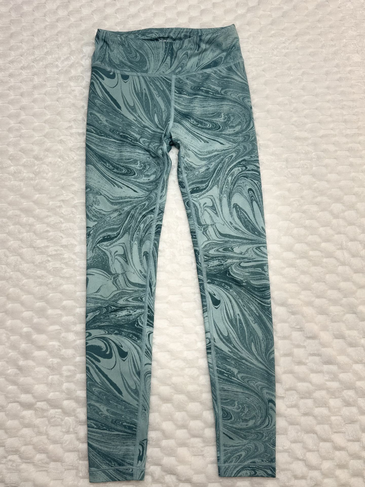 Pre owned - in a good condition Athleta Girl High Rise Marble Ankle Leggings Blue Green Adjustable Waist M 8-10