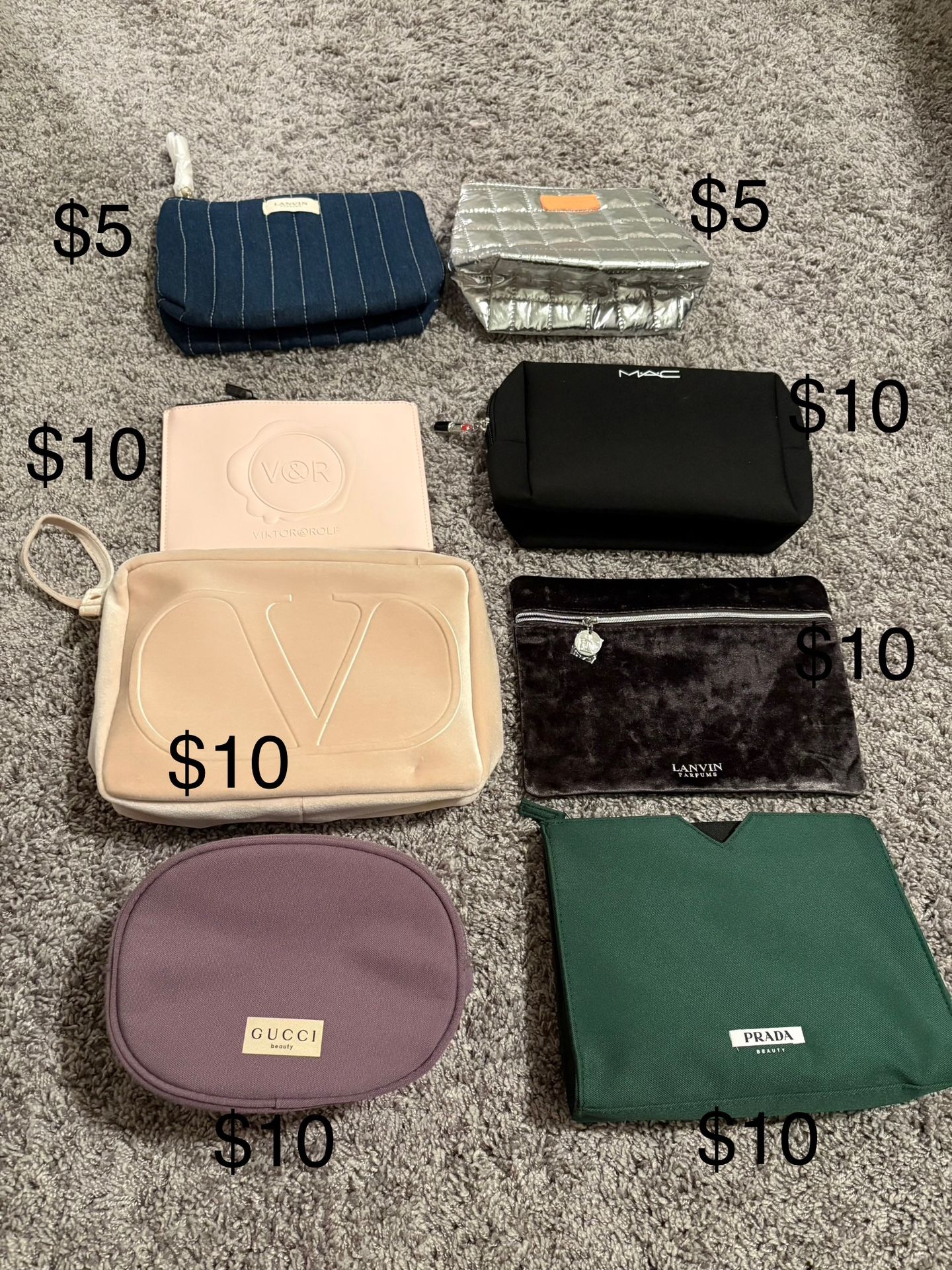 Designer make up bags or you can use it as a handbag clutch most of then they are all designers. You can compare the prices online. Nothing gonna be my price Gucci ,Valentino Mac, Lapar ,Clinique etc… I add some pictures so you can compare the prices. My loss is your gain all in good condition brand new. I got them as a gift with purchased during Christmas time with my purchase. serious buyers only cash only pick up only