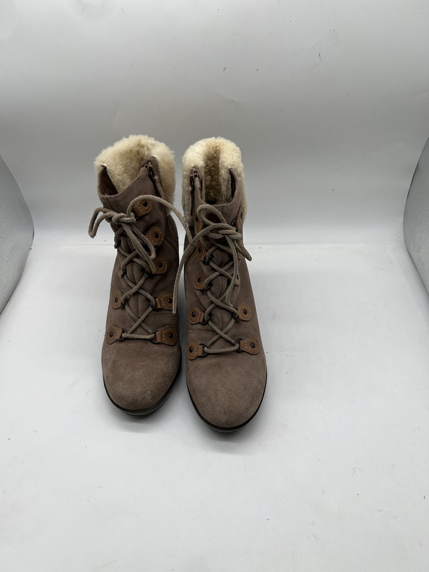 Cole Haan-Nike Air Talish Suede Shearling Lace Up Waterproof Wedge Boots Sz 8.5B