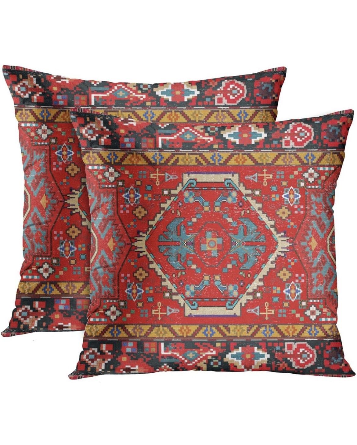 Britimes Throw Pillow Covers, Aztec Kilim Home Art Decor, 18 X 18 Inches Set Of 2 Cushion Couch Sofa Cases, Abstract Oil Painting Pillowcases For Bedroom, Living Room, Ethnic Decorative, Red Tribal