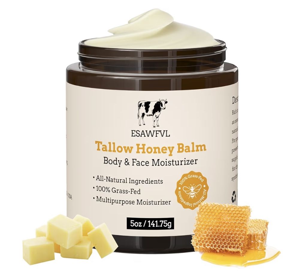 Beef Tallow for Skin, Whipped Tallow and Honey Balm for Body and Face, Natural Formula Grass Fed Tallow Face Moisturizer for All Skin Types - 5oz