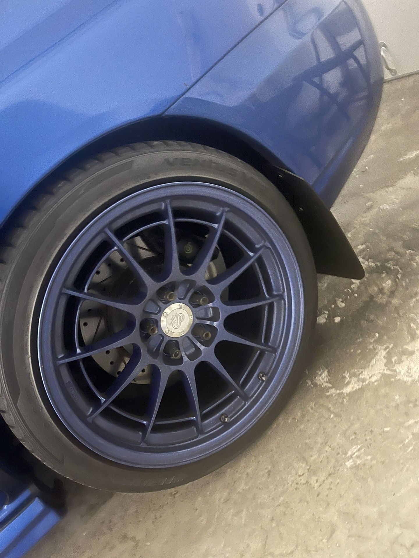 5x114 Backspacing: 6.31 Offset: +27 Wheel Diameter: 18 Wheel Width: 9.5 Hub Bore: 72.60 Weight: 25.0 Bolt Patterns: 5x114.3 (5x4.5) On basically new Hankook Evo V12 tires