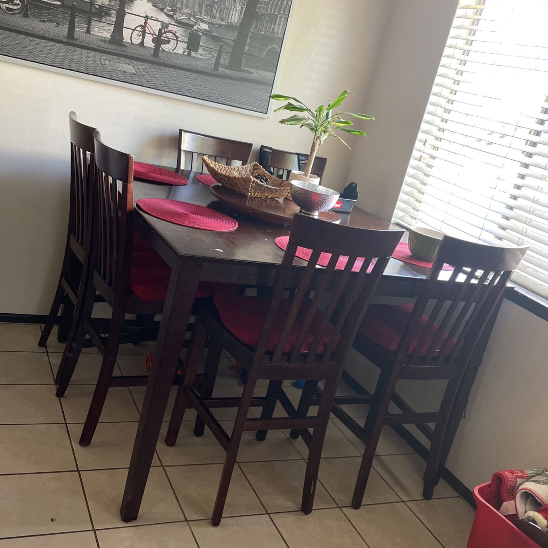 Solid wood dining table. 6 chairs included. 200$ OBO