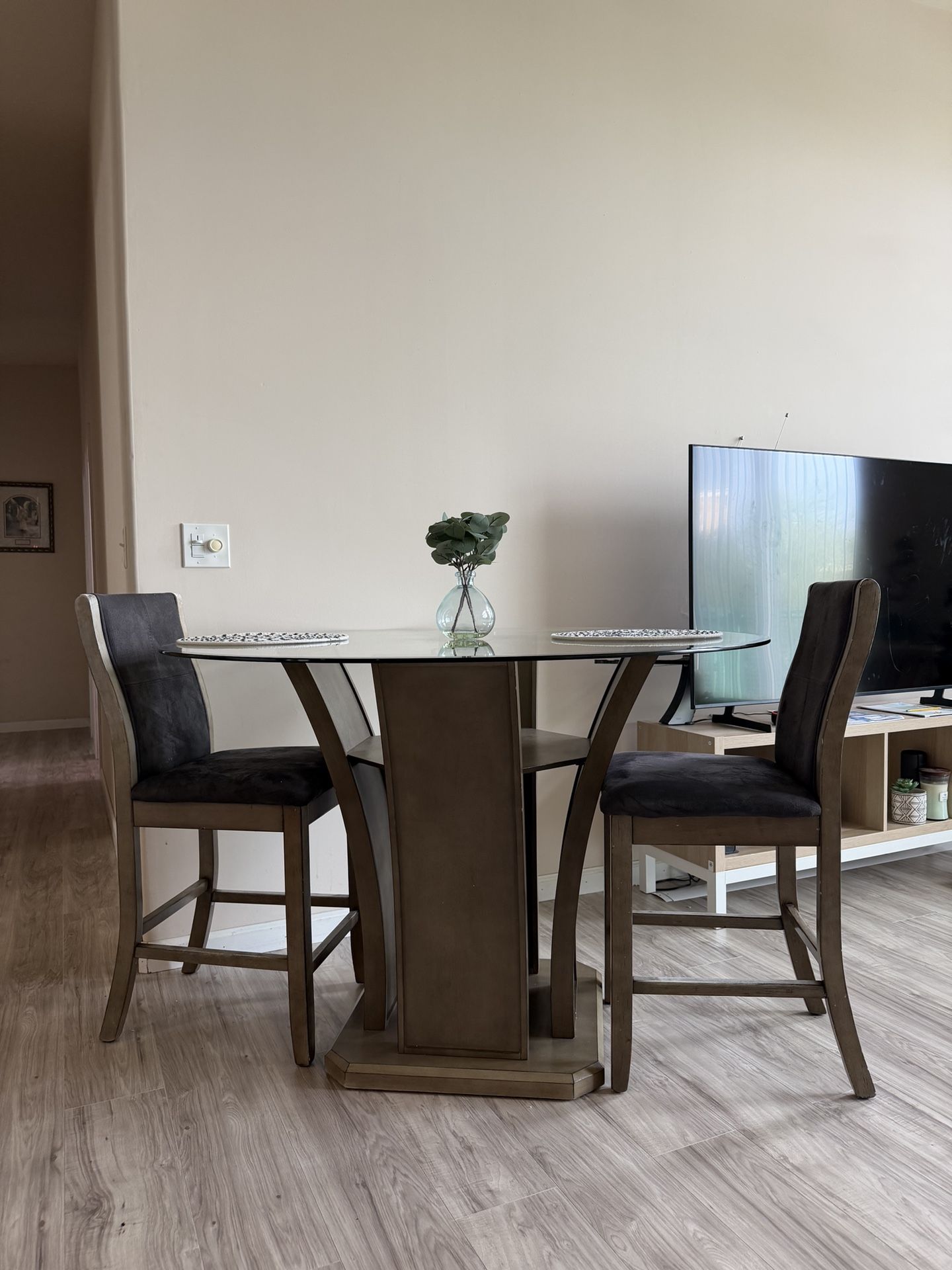 Glass Table with 2 Chairs. Good condition. Some scratches on glass table (Nothing Major). Asking $250 firm. Pick up only. Located near Broadway & Calaveras (Downtown Fresno)