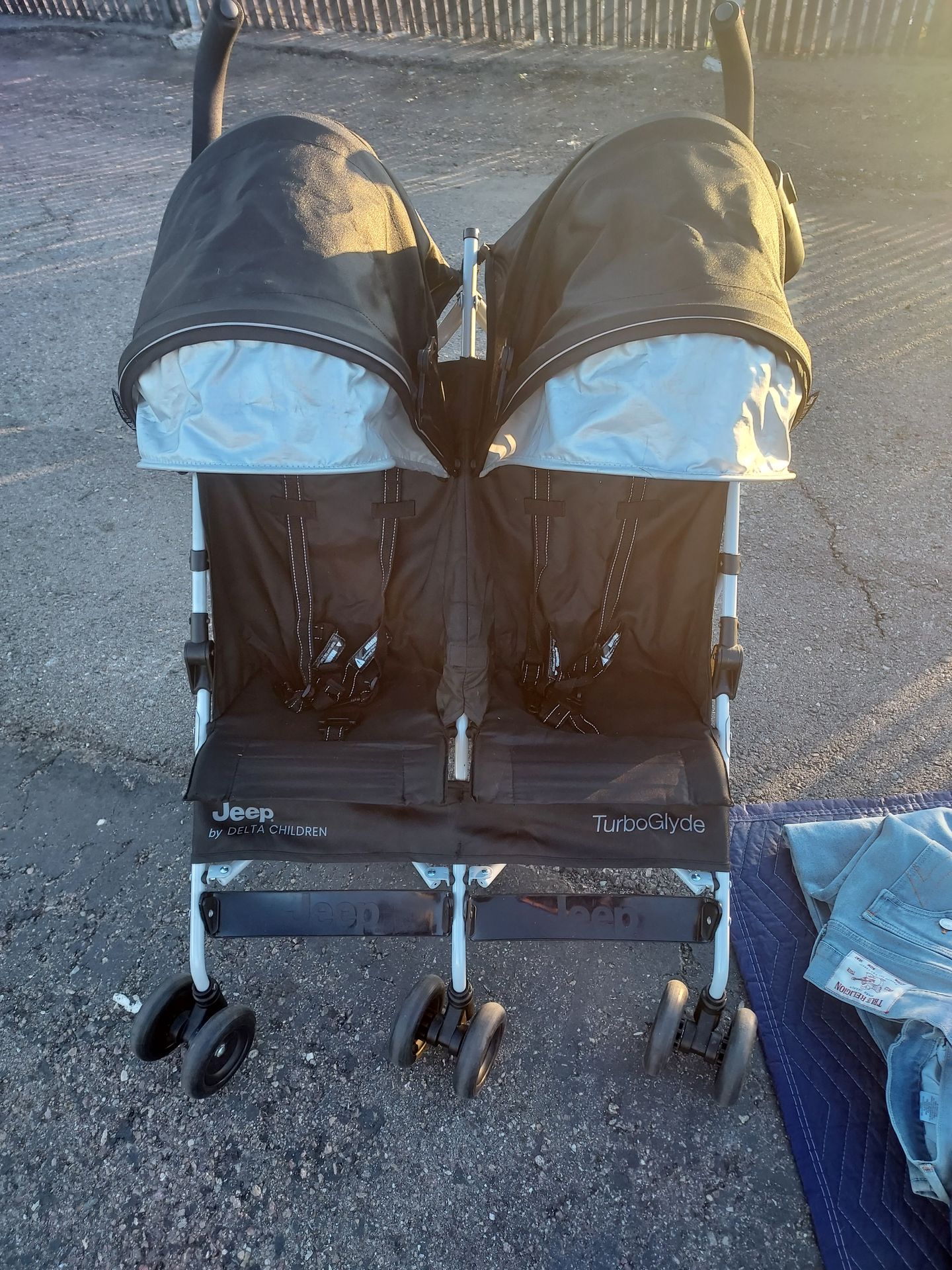 Jeep twin stroller like new .