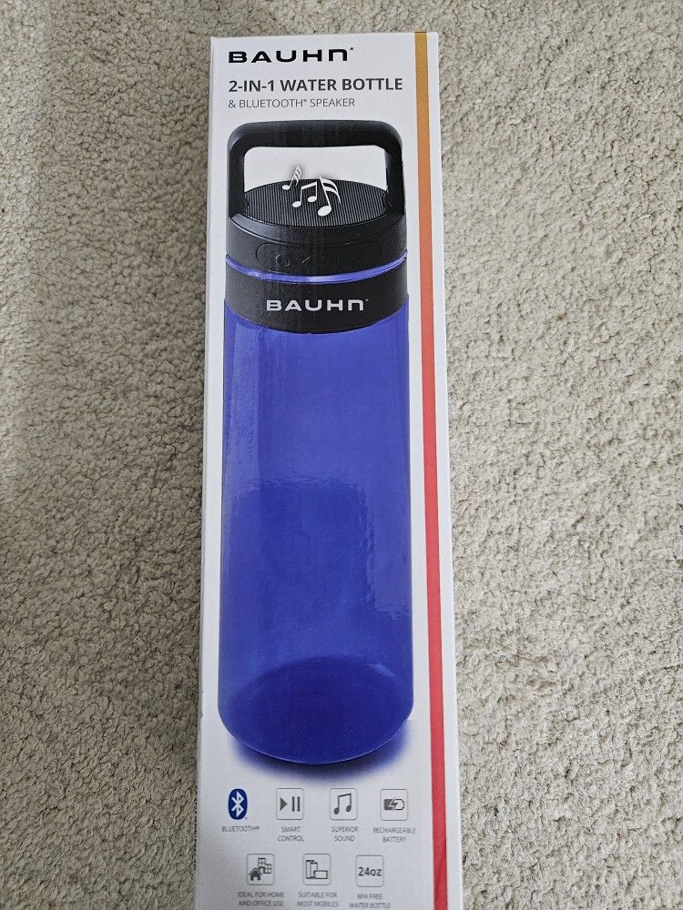 I have two (1 blue and 1 purple - $25 each) Bauhn 2-In-1 Smart Water Bottle with Bluetooth Speaker Blue. Smart Touch Control with superior sound Rechargeable battery (Type-C USB Charging) Ideal for home or office use 24 oz BPA Free Water Bottle Top includes LED ring lights, carabiner clip, & controls for music play