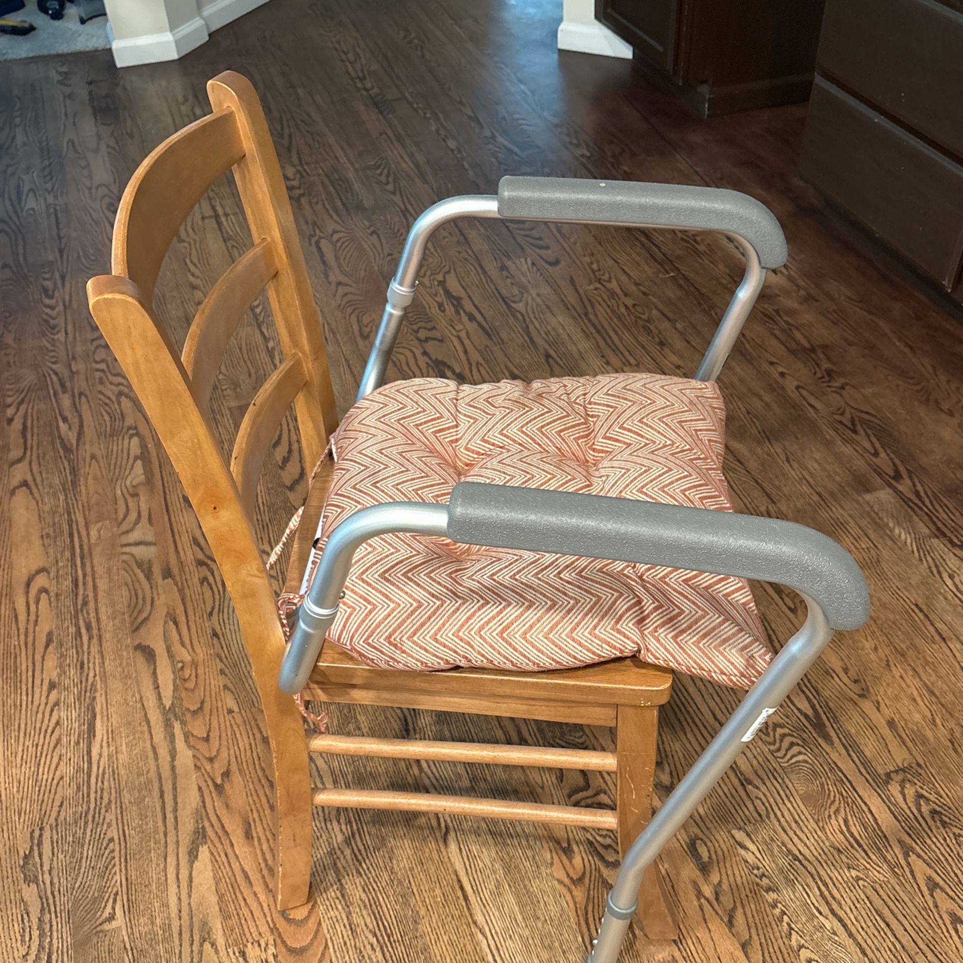 This is just a kitchen chair that I screwed in an arm thing that is used to help elderly people get off the toilet.