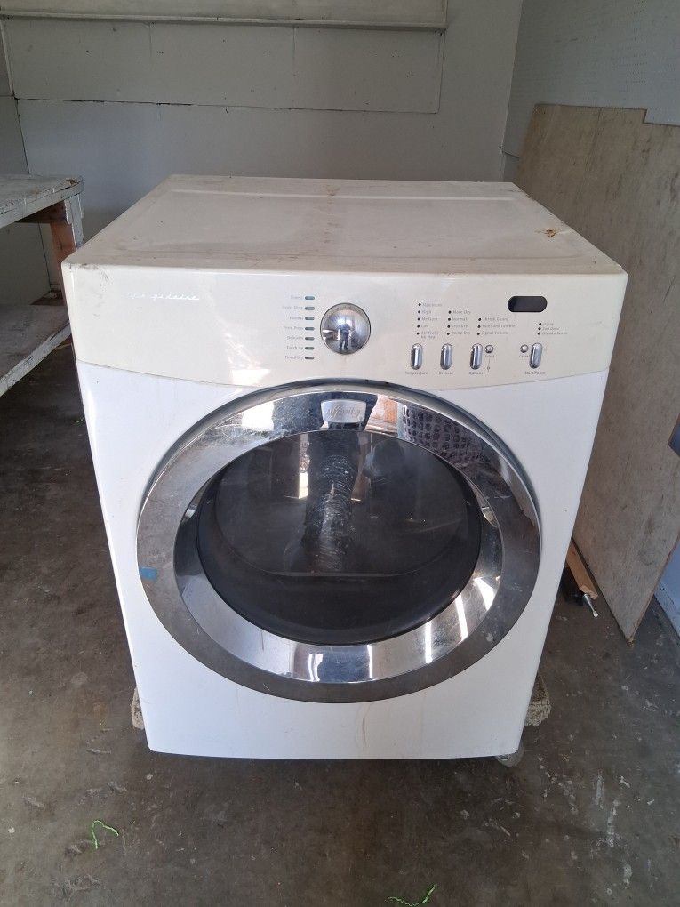 Brand Frigidaire, nice dryer.Good condition works fine.Then i'm dirty on the on the outside brand new on it's the outside