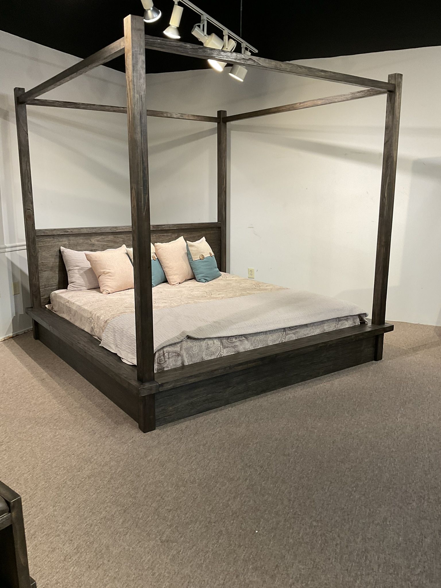 New QUEEN size platform canopy bed in a box