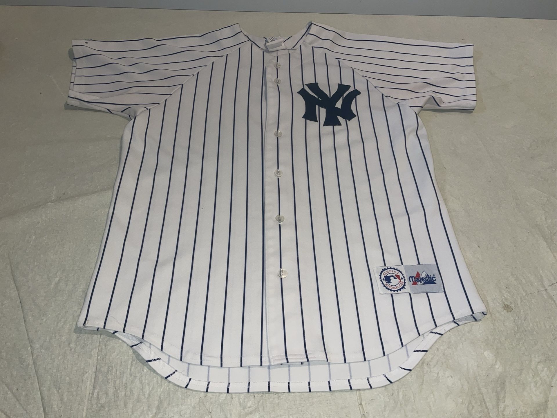 New York Yankees Majestic Jersey Mens Medium 6400 White Sewn Clean PinStripes