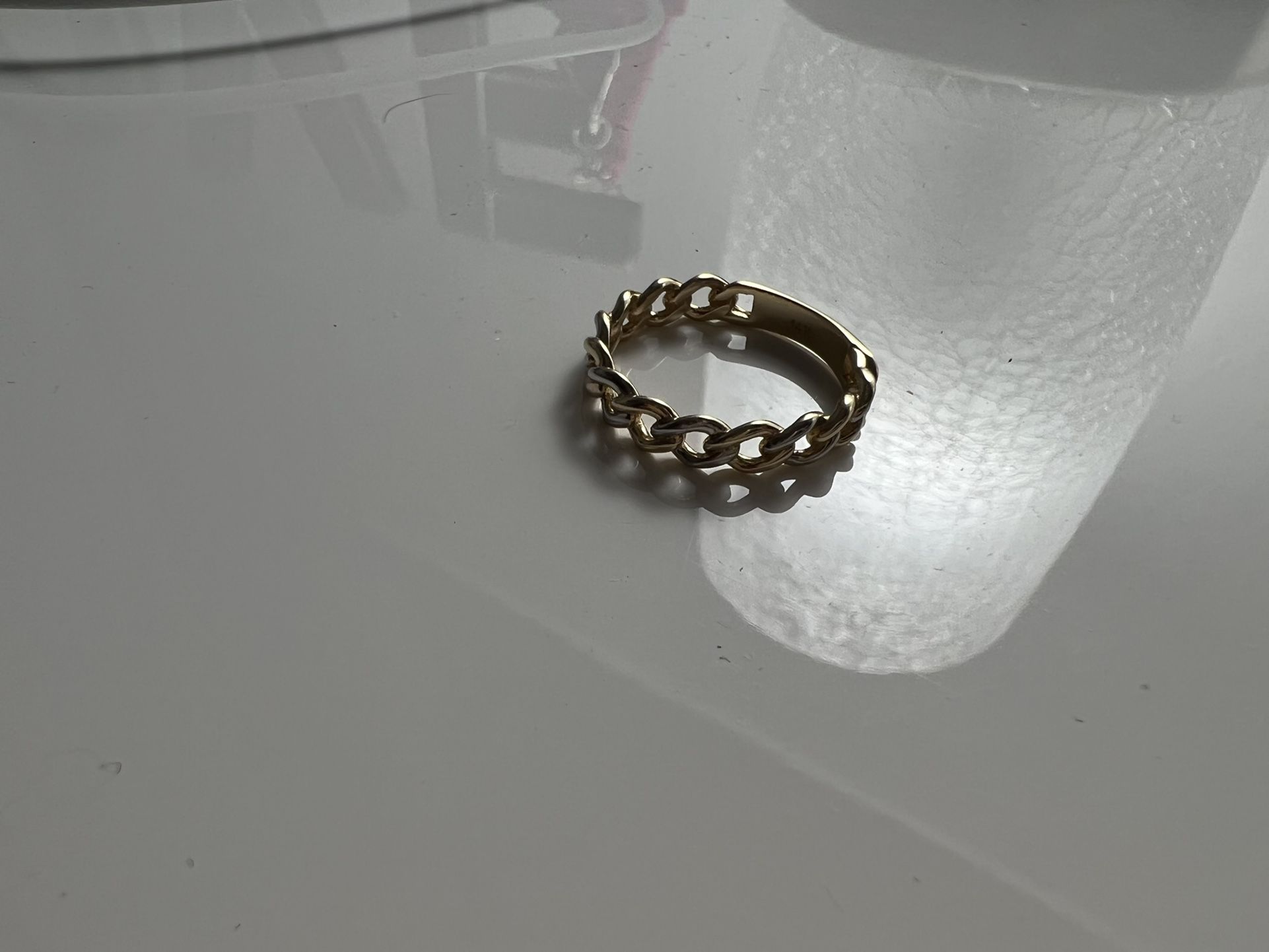 Gold Rink 14k REAL GOLD. NEW. It has a plated design. SIZE 7.5. Only serious inquiries
