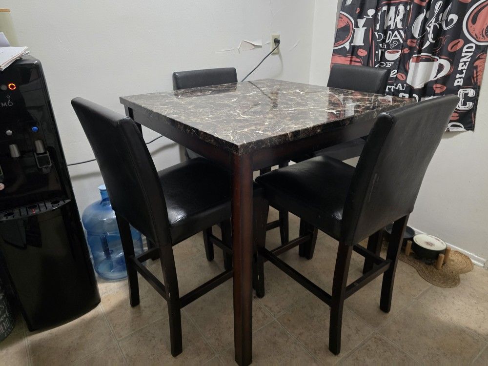 No broken pieces, or tears. 4 chair dinning table. Don't need it. Please pick up