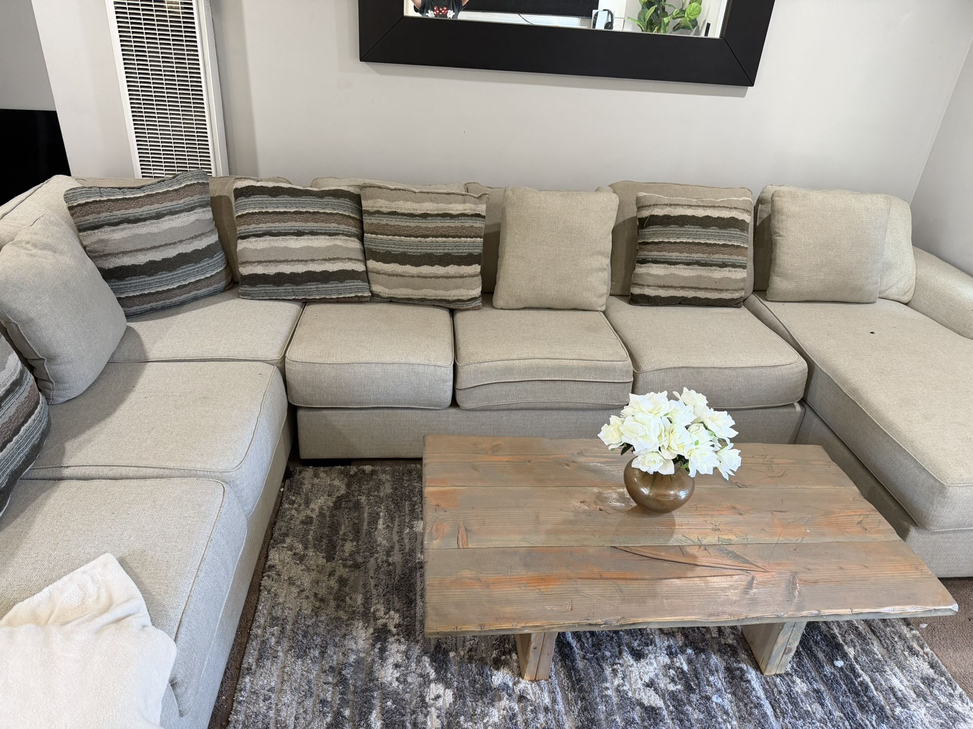 Large sectional couch up for sale moving so need it gone asap well taken care off always had them cleaned any questions please message me measures ments are With 162 inches Deep 45 inches Height31” Asking 400 or best offer