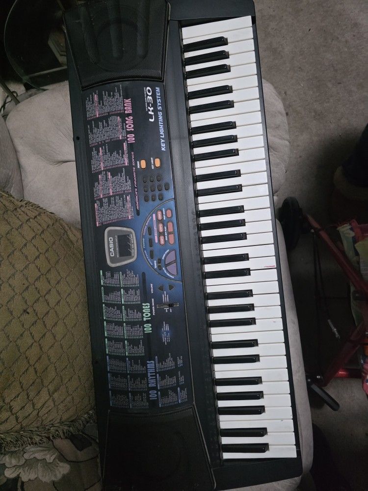Casio LK-30 electronic keyboard with light-up key learning system. Great for beginners learning piano or kids practicing music. • 61 full-size keys • Lighted key system for easy learning • 100 tones, 100 rhythms, and 100 song bank • Built-in speakers • Volume control and rhythm controls • Good working condition Perfect starter keyboard for learning piano. Local pickup.