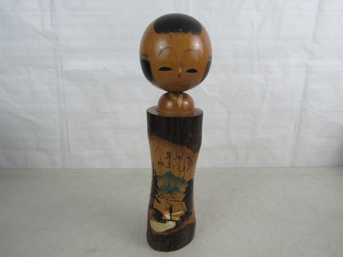 The Kokeshi doll is 14" height X 4" head width, and weighs 2 pounds 6 ounces. Good condition with some typical age and usage wear. The doll has a natural split in the wood just below the neck line about 3/4" length. No broken or missing parts. See photo's