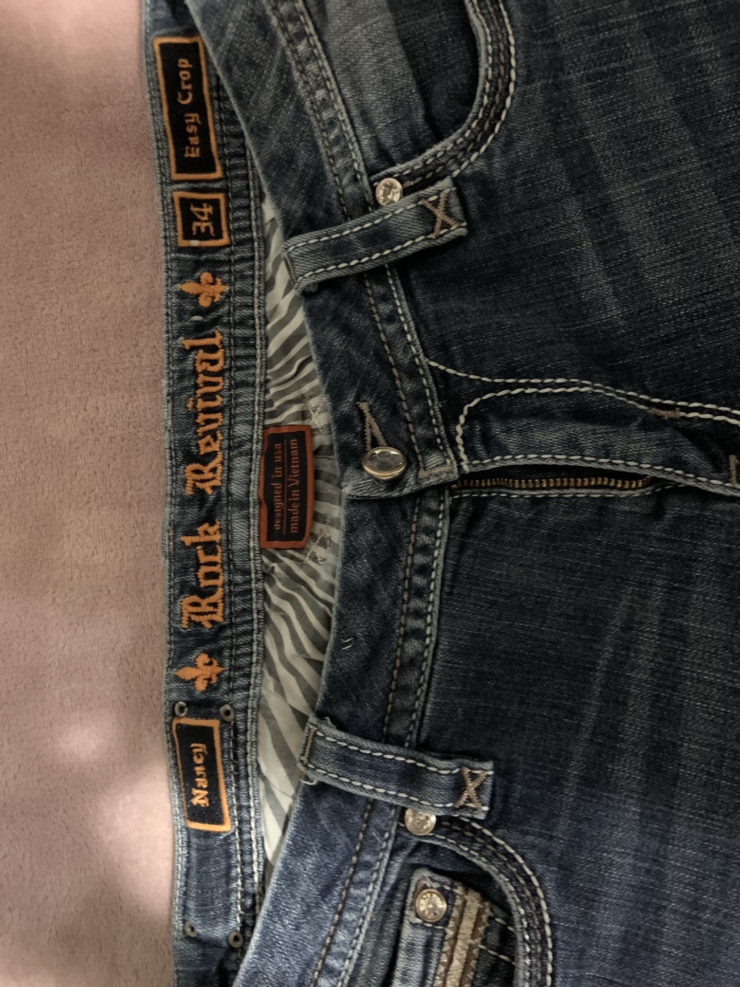 Rock revivals for WOMEN there in good condition but the only flaw that has it’s missing the R on the name but overall the pants are in really good condition and still have really good color on them. We can negotiate