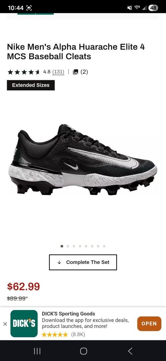 Nike Men's Alpha Huarache Elite 4 MCS Baseball Cleats Size 8 And 7