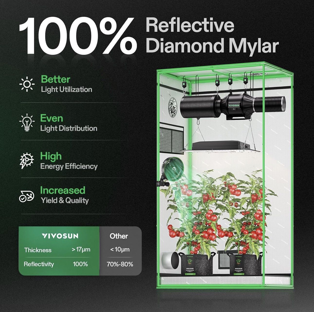 VIVOSUN S326 36"x20"x63" Grow Tent, High Reflective Mylar with Observation Window and Floor Tray for Hydroponics Indoor Plant. Opened box but never used.