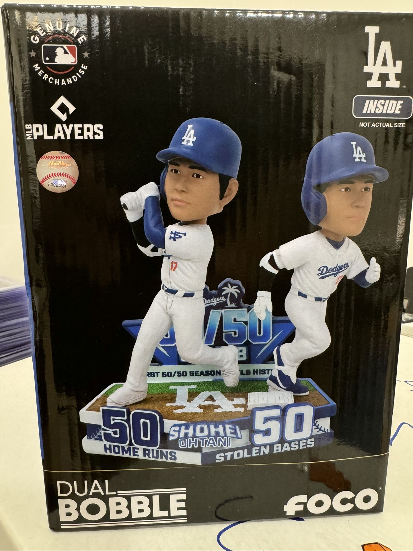 Championship trophy ohtani and a 50/50 ohtani bobble heads