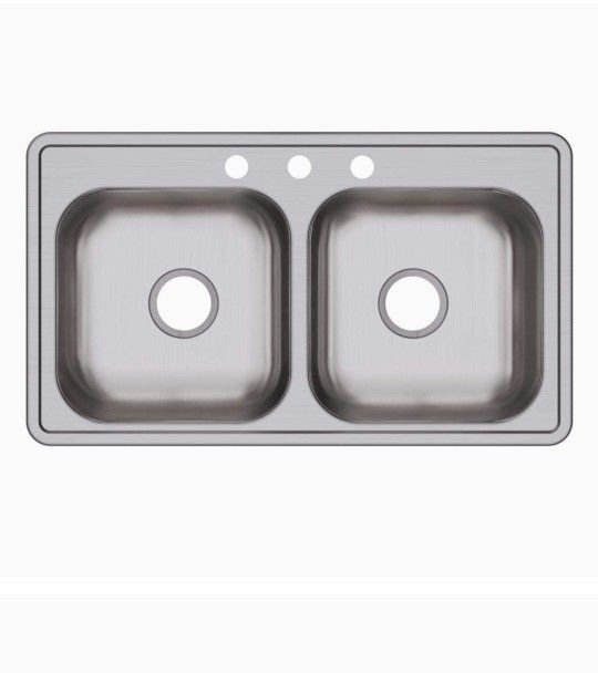 Elkay D233193 Dayton Equal Double Bowl Drop-in Stainless Steel Sink, 33 x 19 x 6.5