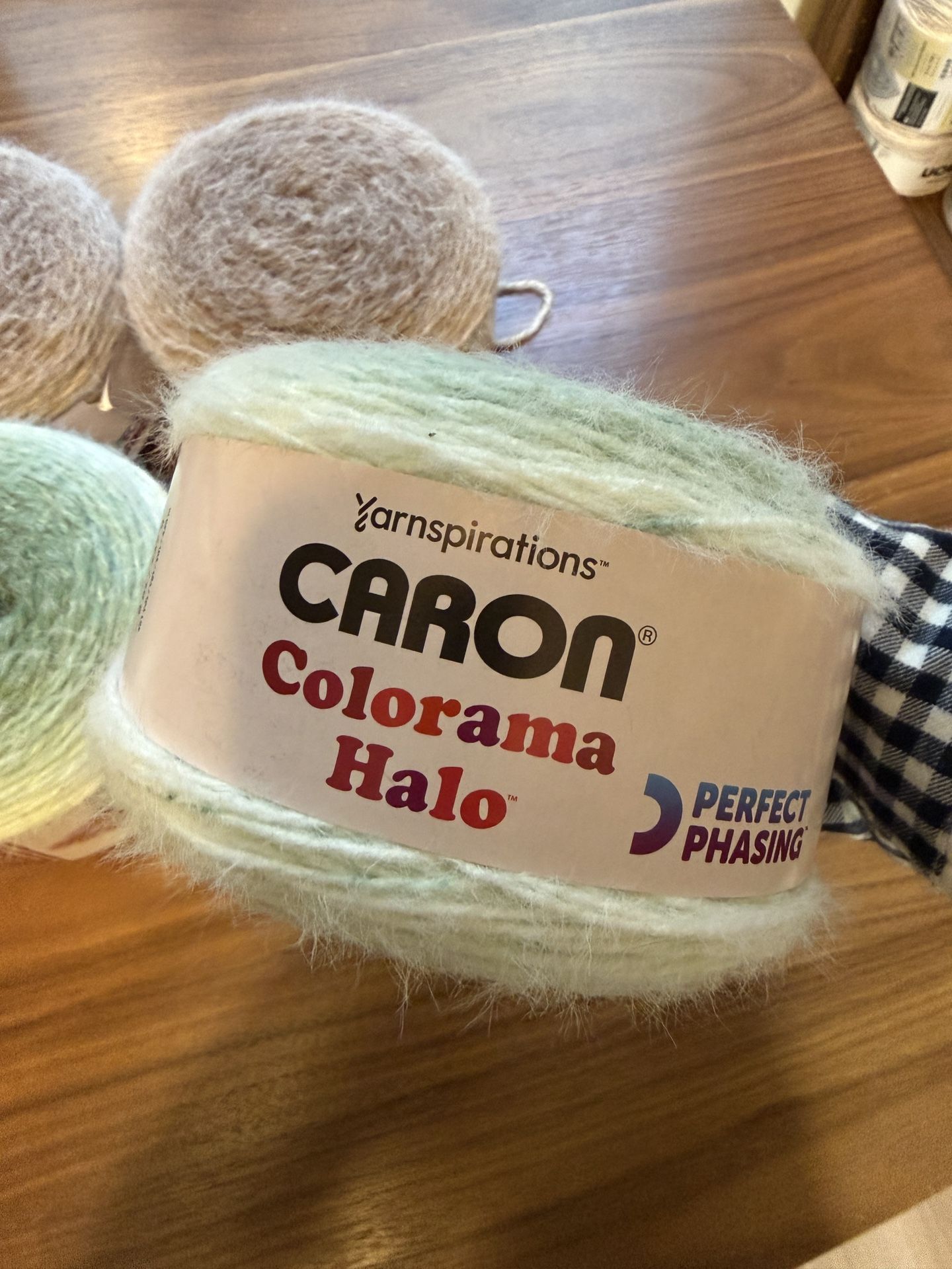 3 skeins of green 3 skeins of brown