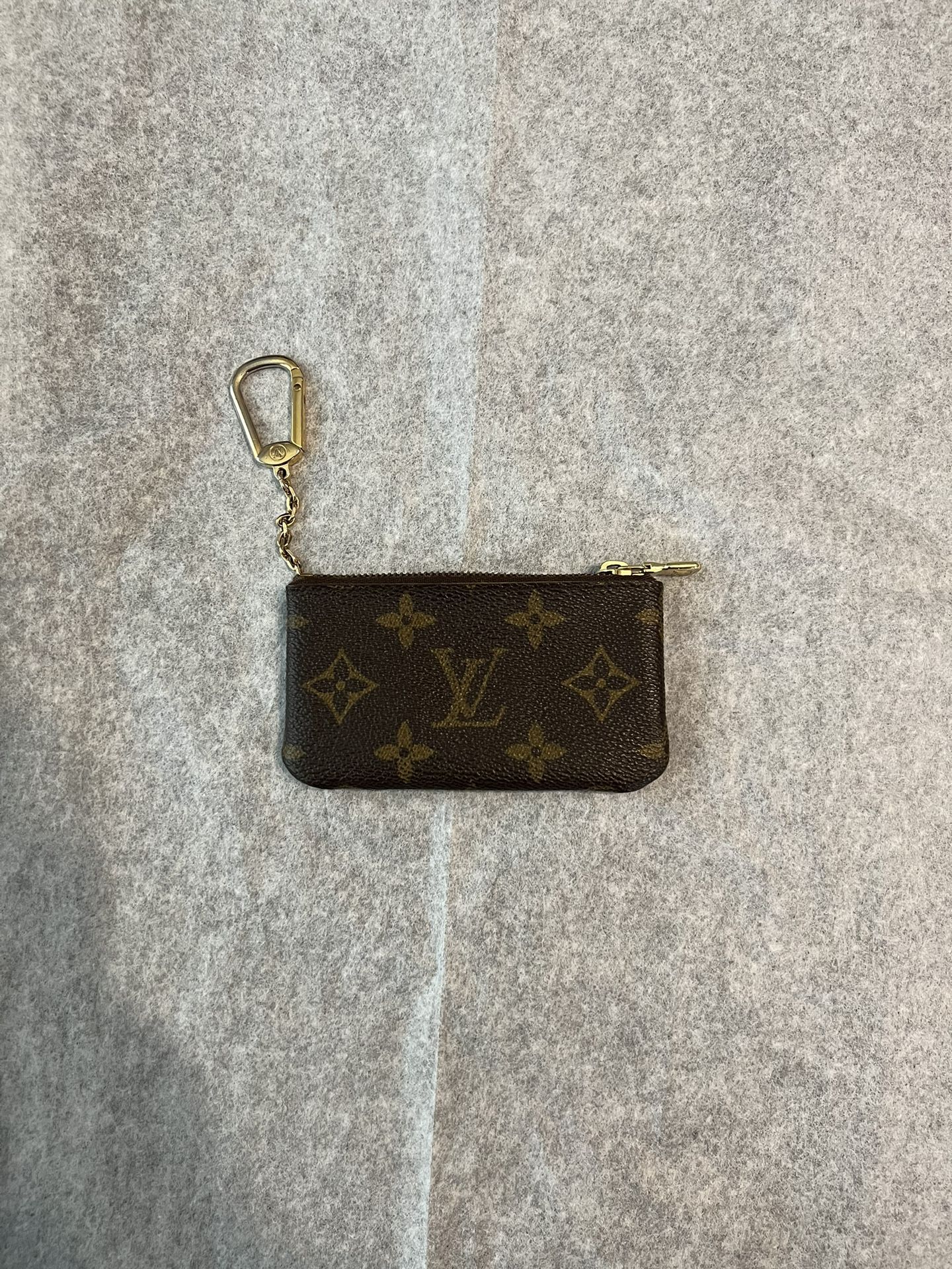 Excellent PRE-OWNED condition AUTHENTIC Minor hardware discoloration— please refer to pictures PRODUCT DETAILS: •4.7 x 2.8 x 0.4 inches •Monogram coated canvas •Grained cowhide-leather lining •Gold-color hardware •Zip closure •Key ring •Chain with hook