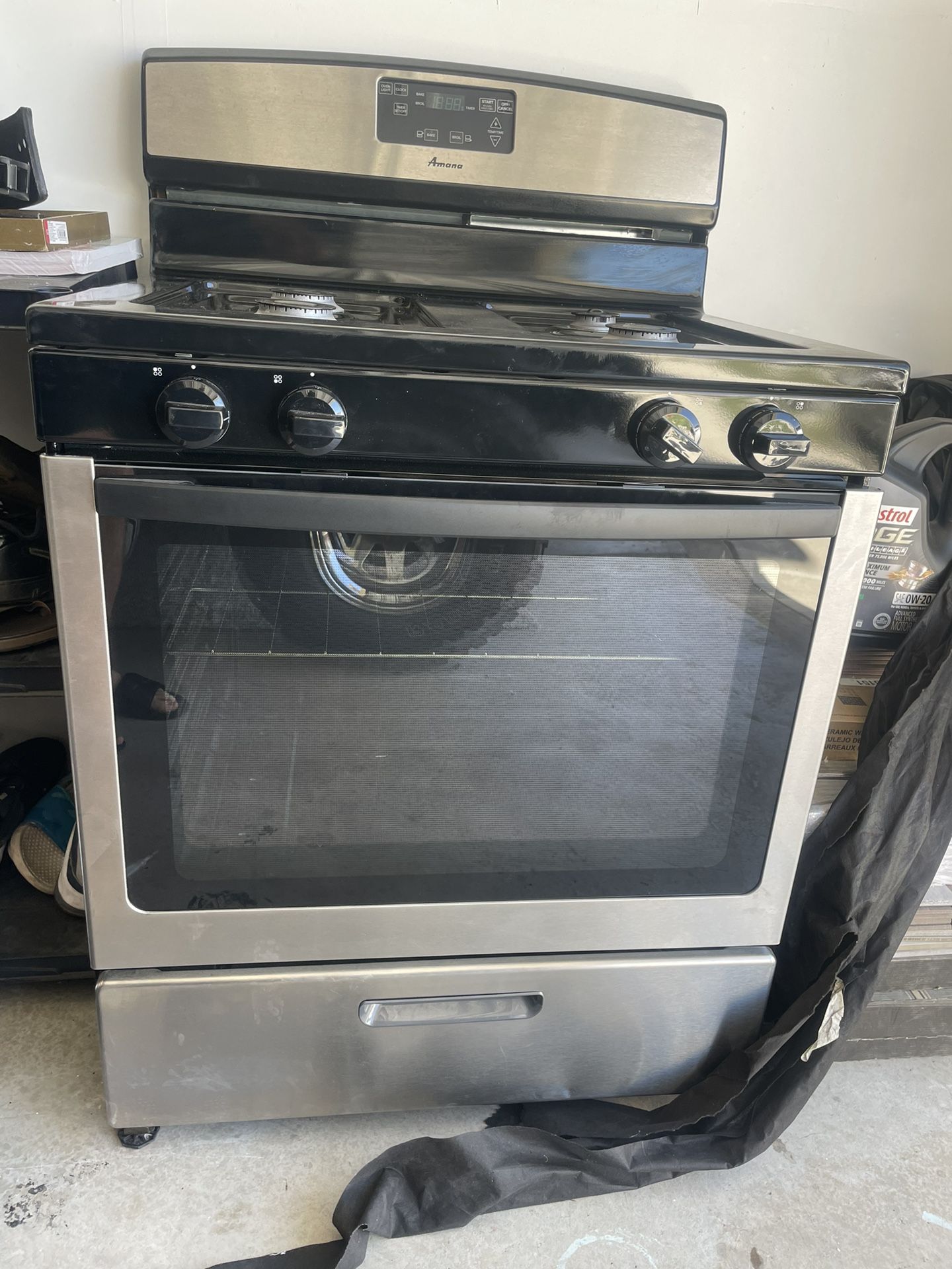 Brand new stove Brand is amana Never used brand new It came with the house but I have my own so it’s been sitting for a month or so Original price is 600 If you want to get it today from home depot Come taking it for 450 off my hands Or willing to negotiate Drop off will be extra depending on where u live