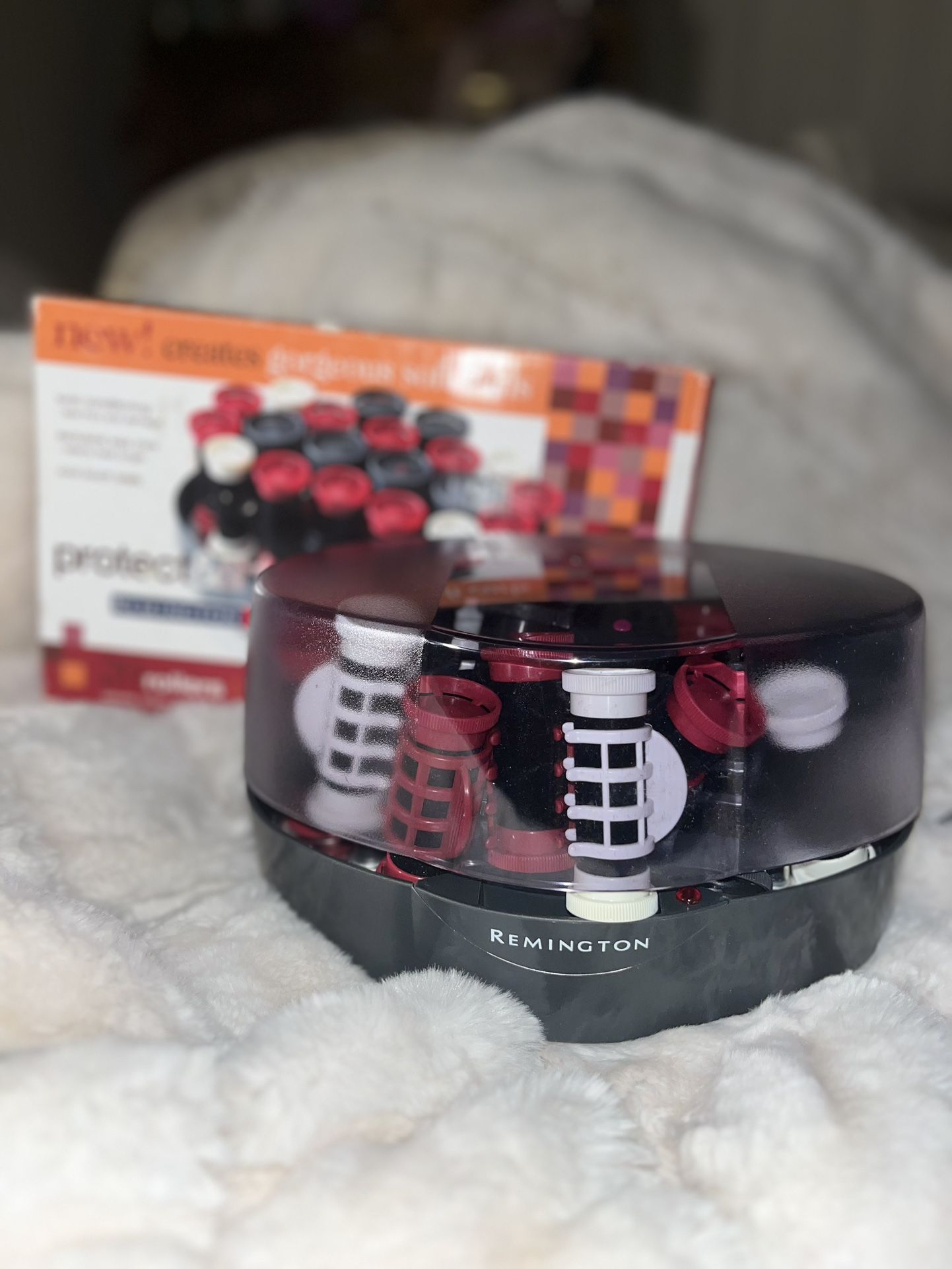 Remington Protect & Shine Hot Hair Curlers 20 Rollers/Clips (all but two clips but will provide replacement) 3 Sizes for Pageant or Prom. Velvet, tangle free rollers, ionic conditioning, exclusive wax core, three roller sizes, cool touch ends and rings, on-indicator light, ready dot darkens when rollers are ready to use, with easy match comfort and color-coded clips and easy match comfort clips