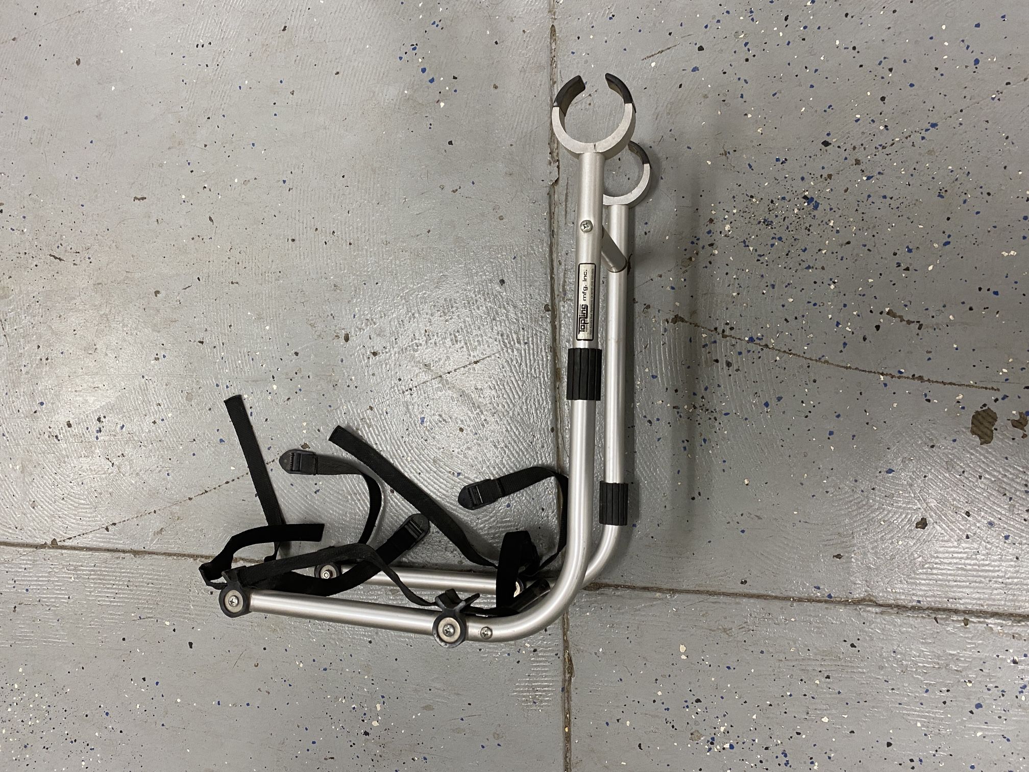 Stromberg Carlson Pr LA102 Ladder Mounted Bike Rack Topline brand Fits any ladder. any make. any model. any year Unique "Docking System" Hooks on without use of tools Holds two bikes securely Easy on... easy off Bikes protected from damage Anodized Aluminum to resist corrosion Weighs only 2.1 pounds No assembly required Stores easily This is used and in like new condition I will NOT respond to messages asking if it still available I will remove this ad once sold US cash only