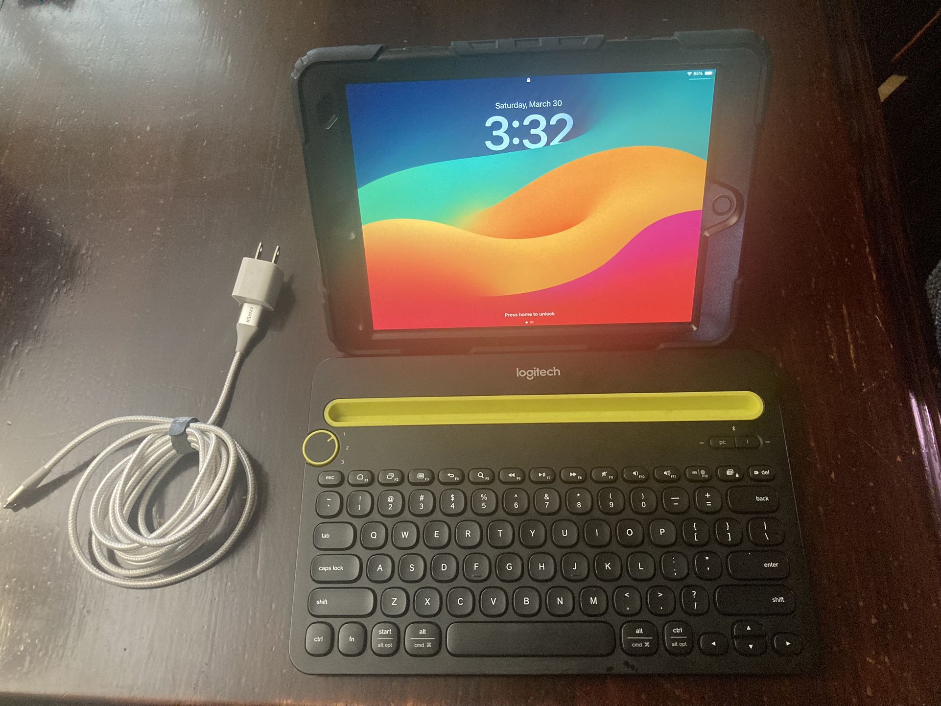iPad 9th Gen 64 GB with Logitech Bluetooth keyboard and charger